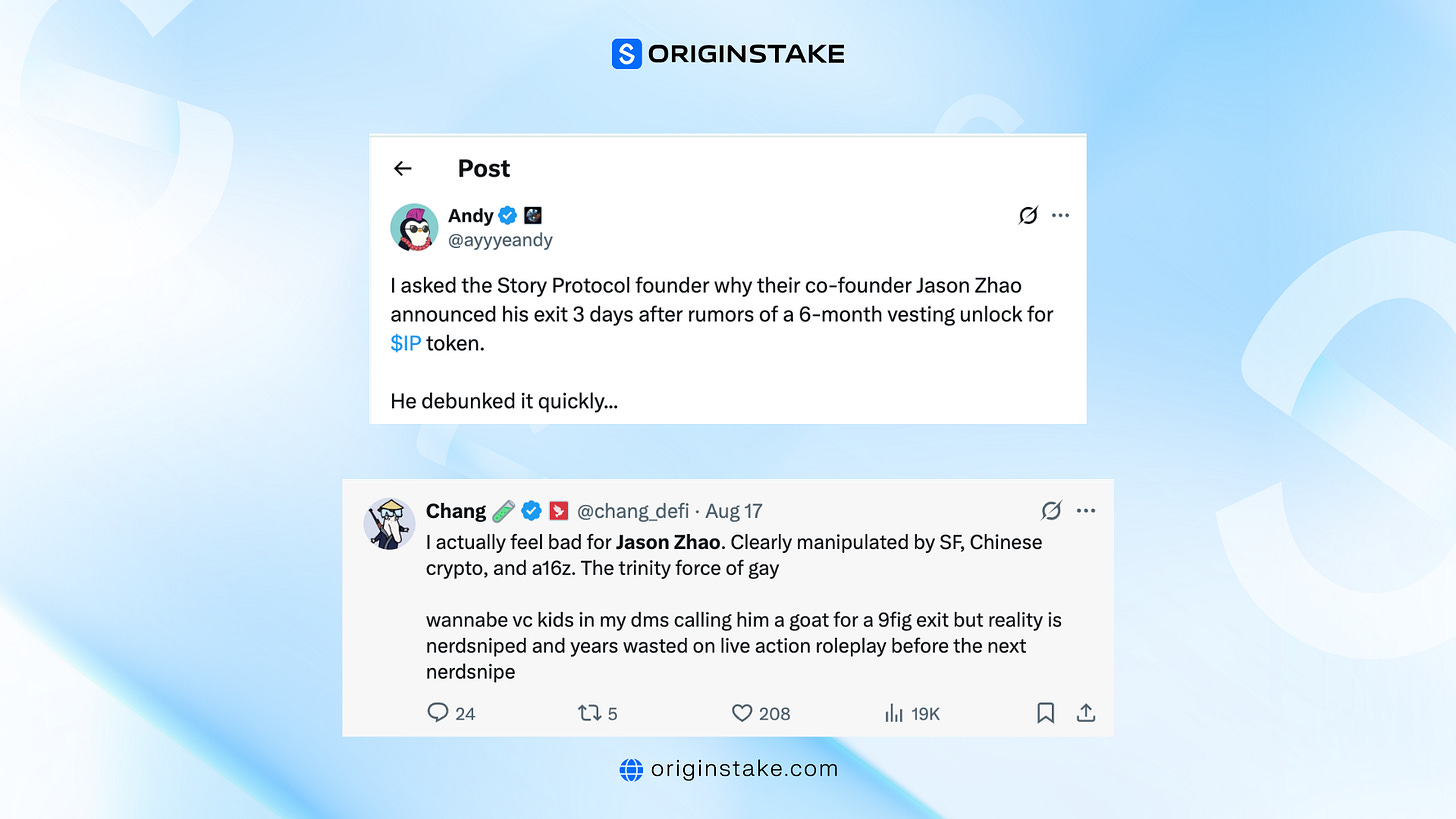 But momentum in crypto can be fragile. In August 2025, Jason Zhao, one of Story Protocol’s co-founders, announced his departure from the project — just six months after its token launch.