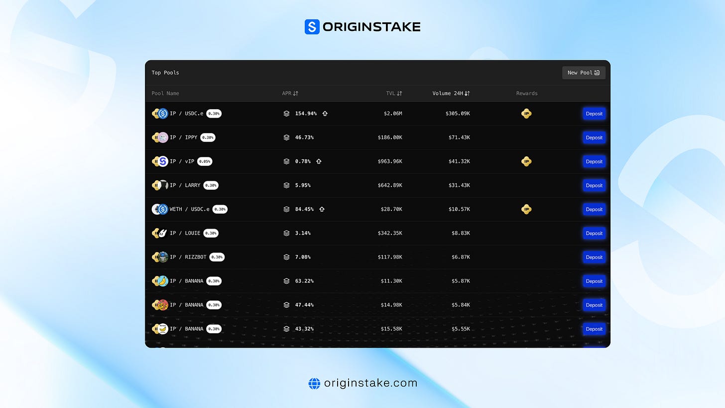 At the moment, StoryHunt’s APR ranges from 0.4% to 144%, depending on the trading pair. The most recommended options are IP/USDC — offering the highest APR and TVL — or IP/vIP, for those who prefer lower risk and minimal exposure to IL.